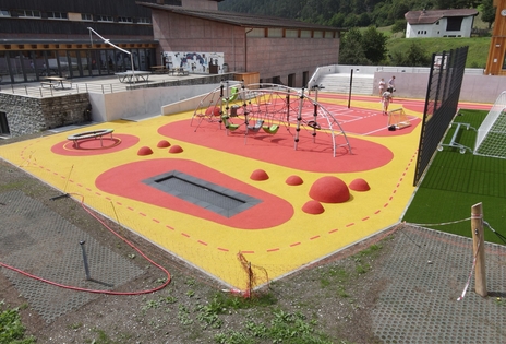 Die Realsport AG hat für die Gemeinde Ramosch den Schul- und Sportplatz erfolgreich umgesetzt. Der neue Kunstrasen der neuesten Generation wurde auf einer Elastikschicht verlegt und die Linierung präzise vor Ort eingeschnitten. Die Laufbahn, der Allwetterplatz und der Spielplatz wurden in zwei kräftigen Farben gestaltet, was dem gesamten Projekt eine besondere ästhetische Note verleiht. Auch die Spiel- und Sportgeräte wurden von der Firma Realsport geliefert und fachgerecht montiert.